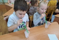 Ребята из группы "Медвежата" как настоящие учёные экспериментировали со снегом и изучали его свойства.